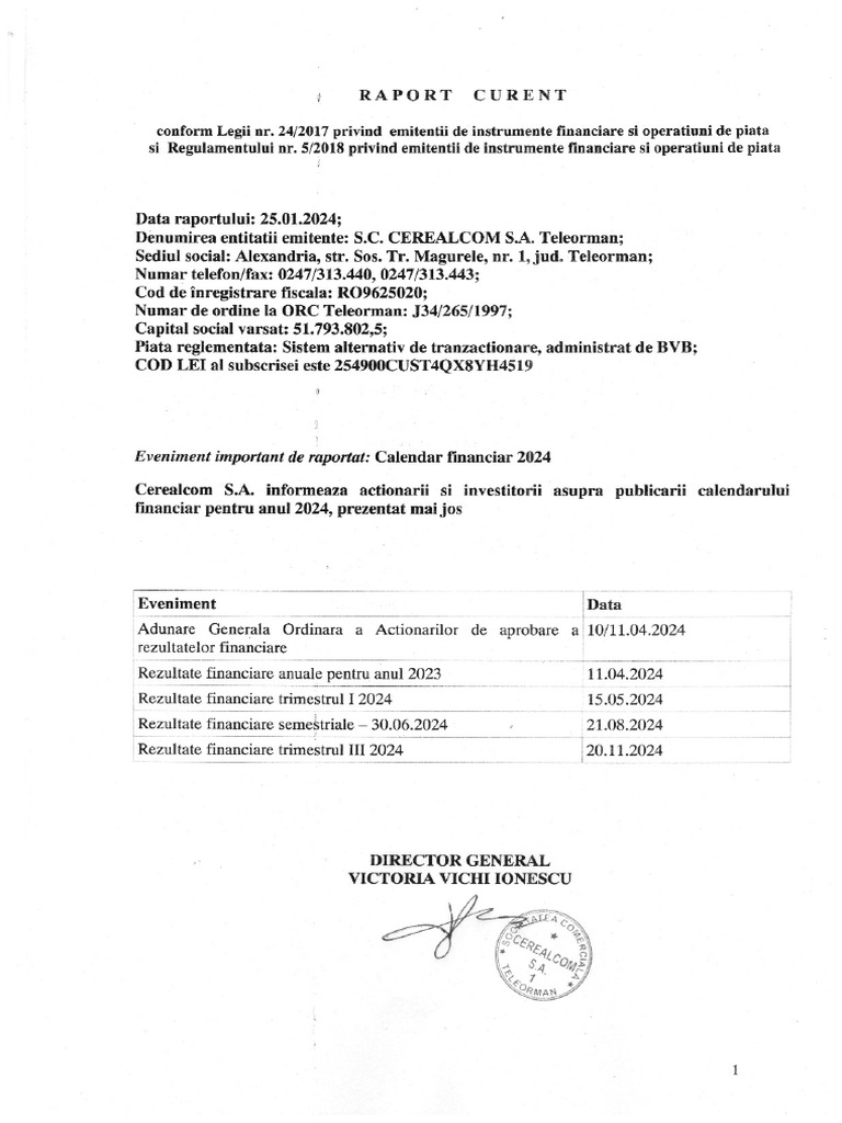 BVB Info Raportari CCOM CCOM Calendar Financiar 2024 PDF