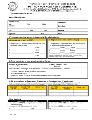 Fillable Online PETITION FOR NONCREDIT CERTIFICATE CCSF Fax Email