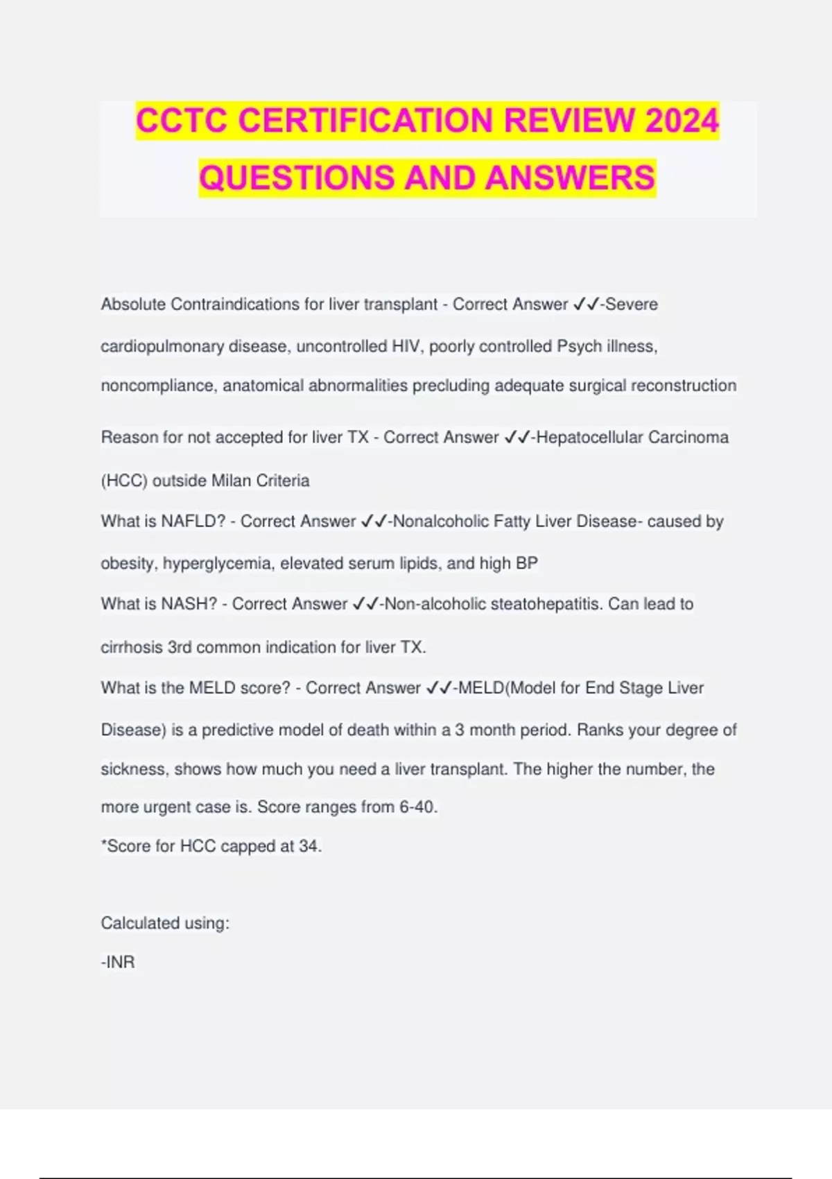 CCTC Certification Review Questions And Answers 2024 Complete