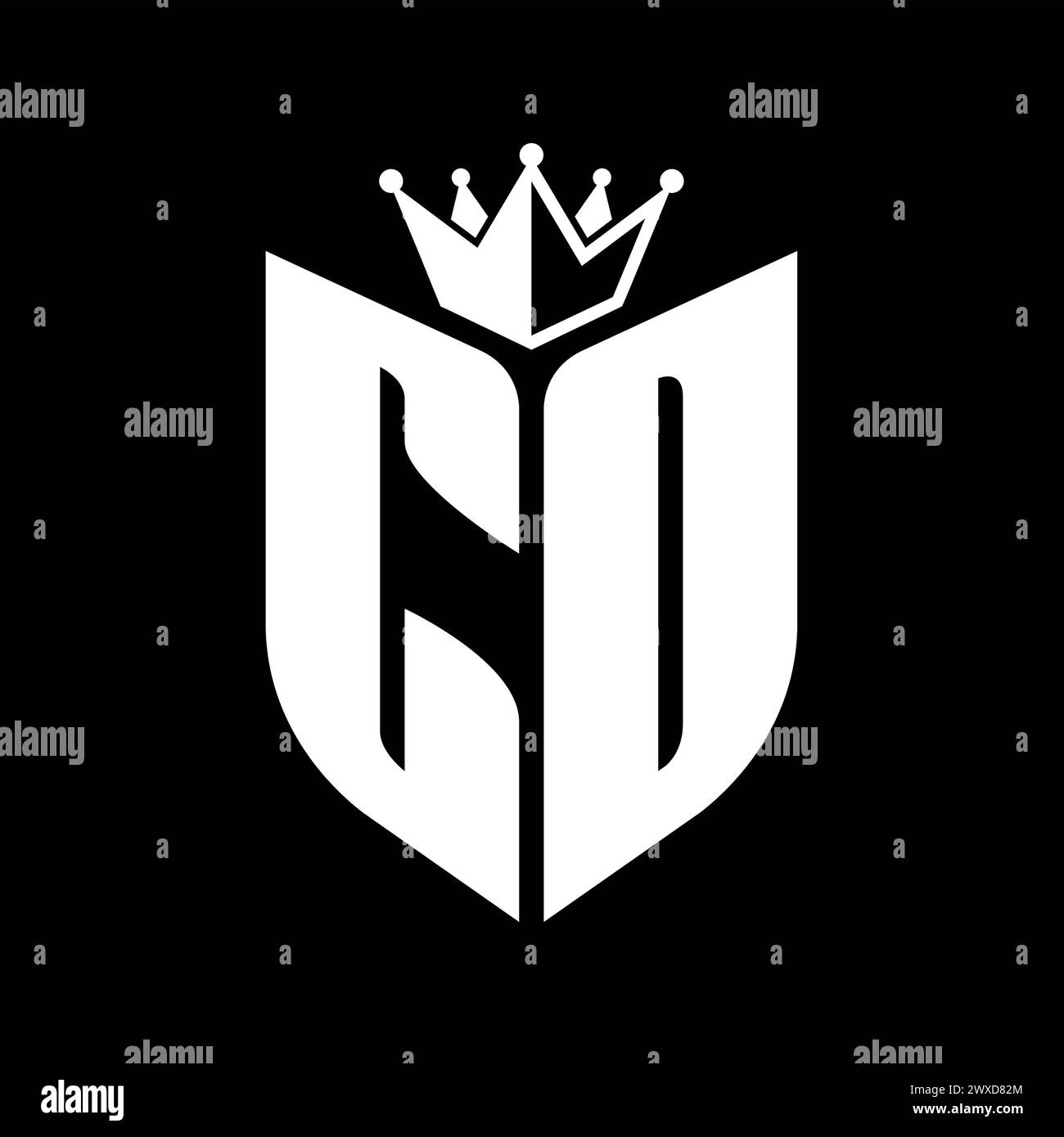 CD Letter monogram with shield shape with crown black and white color