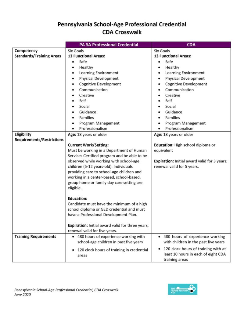 Pennsylvania School Age Professional Credential CDA Crosswalk The
