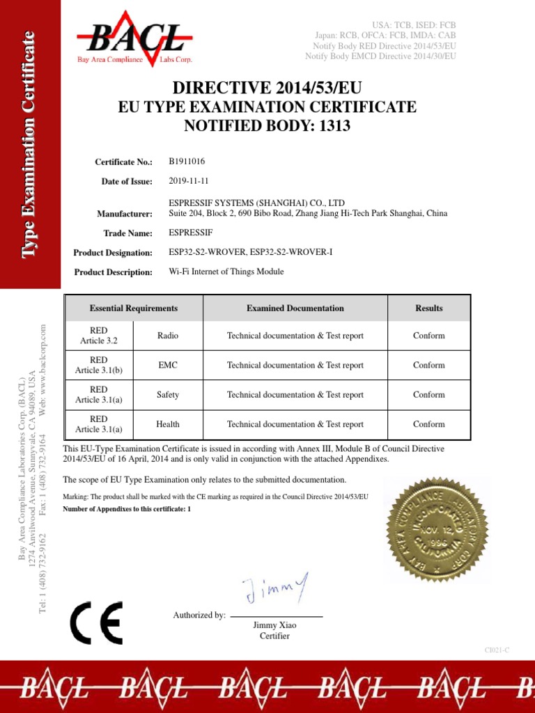 Esp32 s2 Wrover Ce Red Certification PDF Regulation