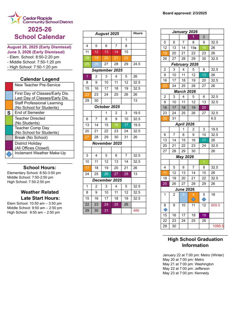 Cedar Rapids Schools Calendar