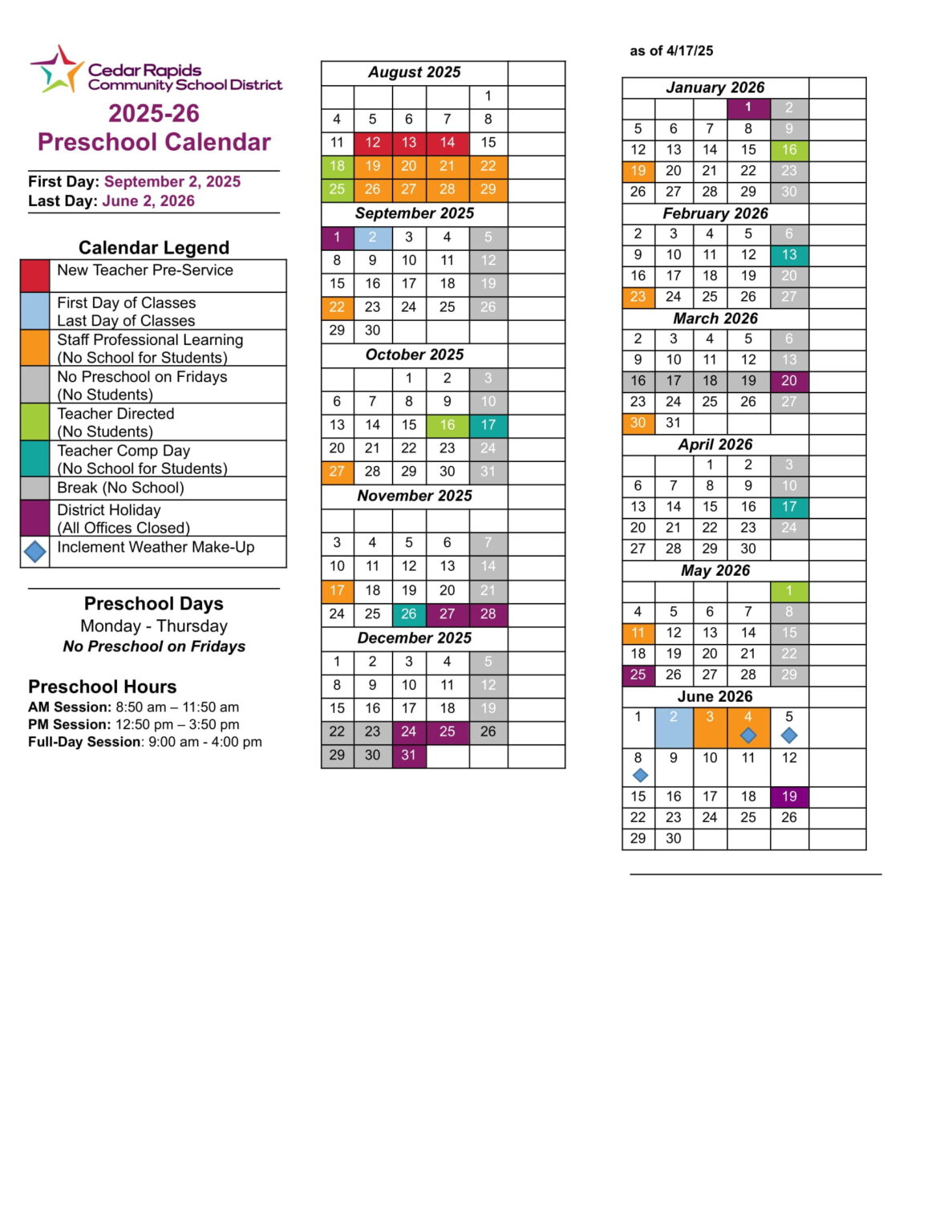 Cedar Rapids CSD IA Calendar 25 26 Revised pdf EduCounty