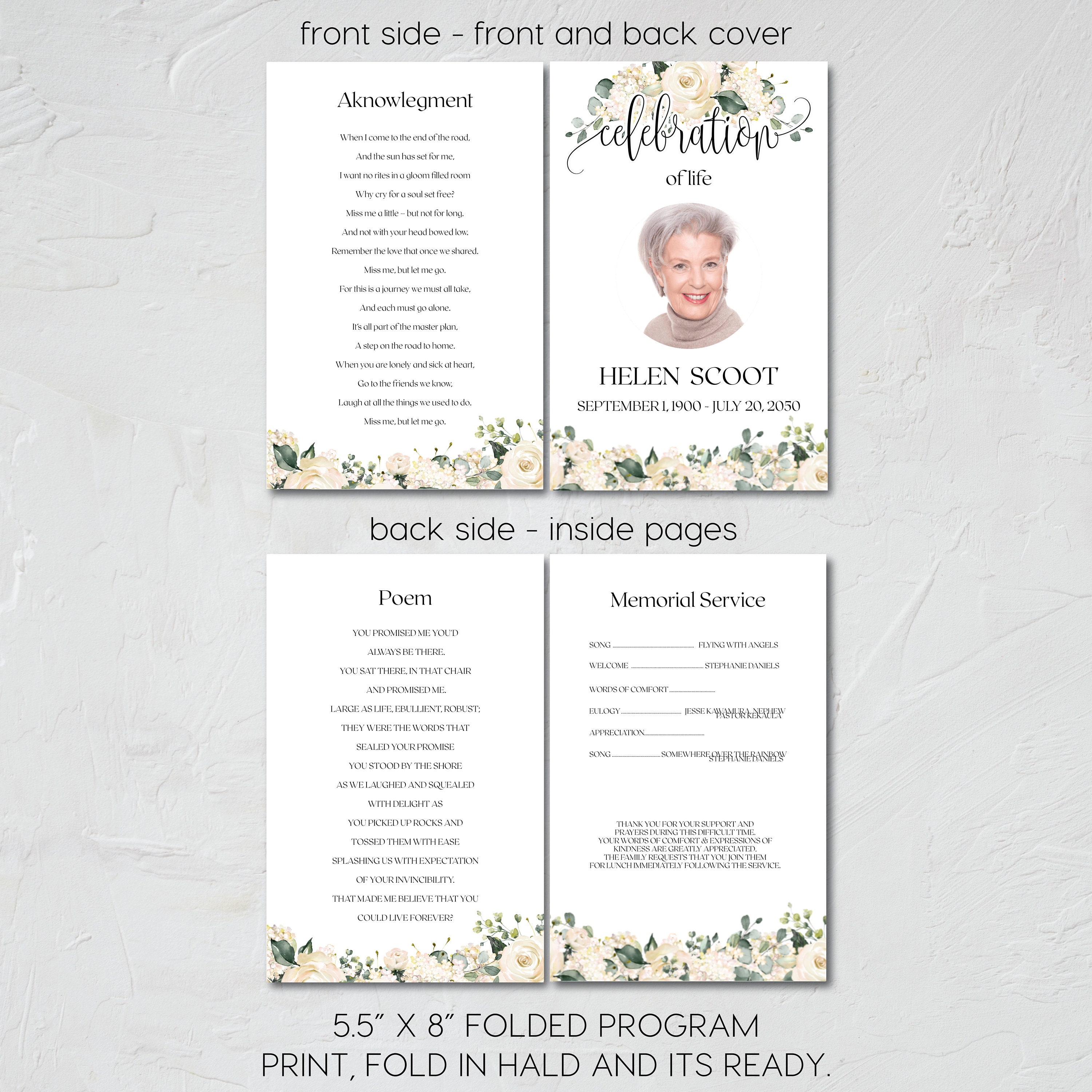 Celebration of Life Program Template Folded Funeral Program Etsy