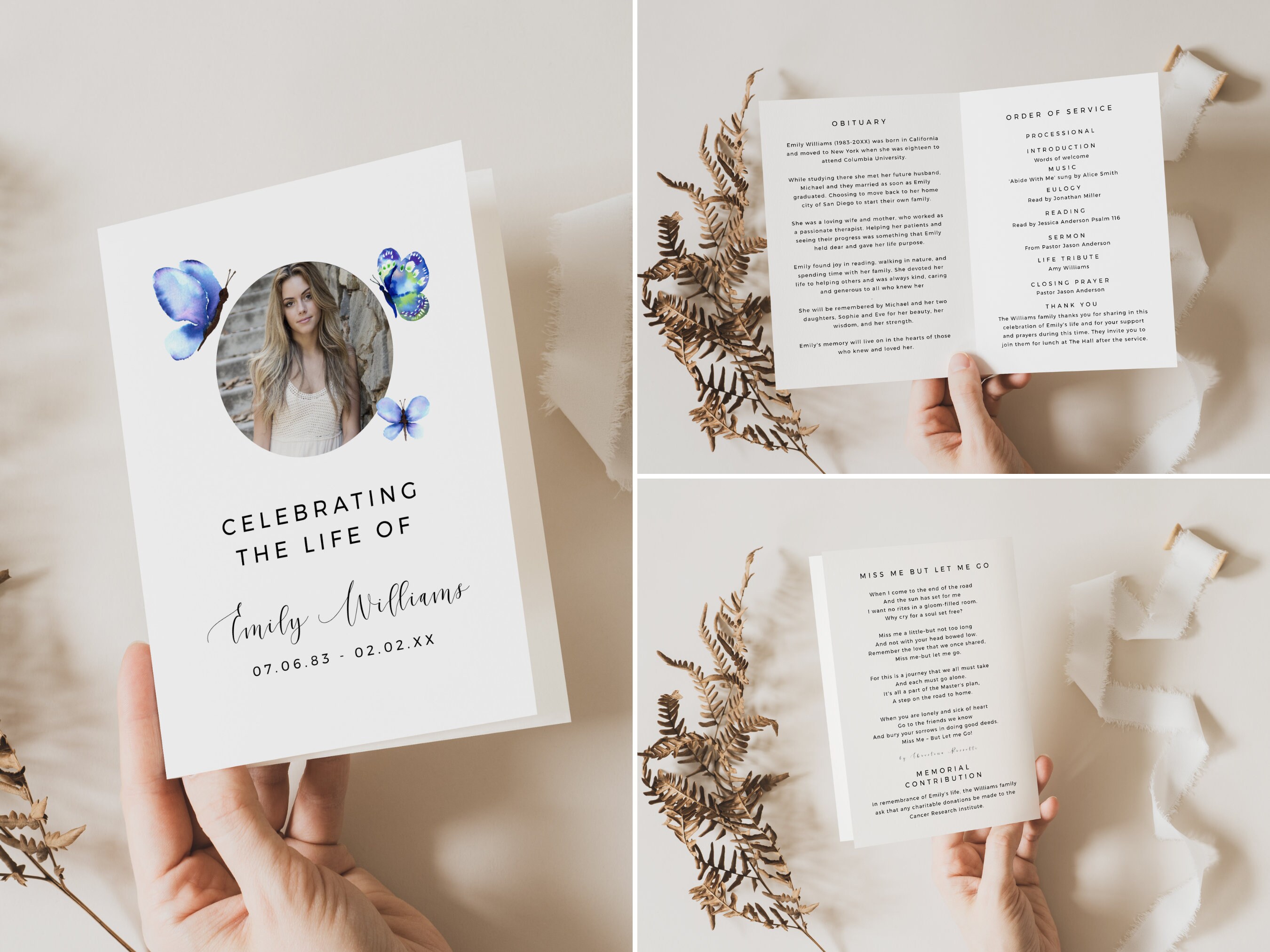 Celebration of Life Program Template Butterflies INSTANT DOWNLOAD