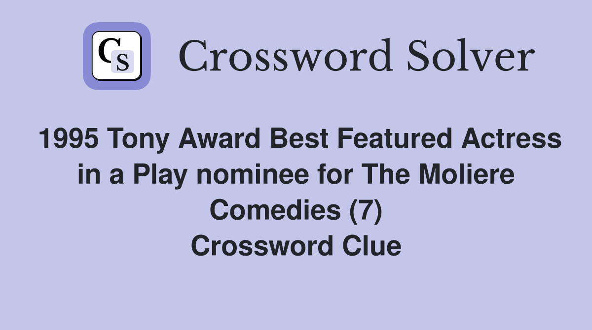 1995 Tony Award Best Featured Actress in a Play nominee for The Moliere