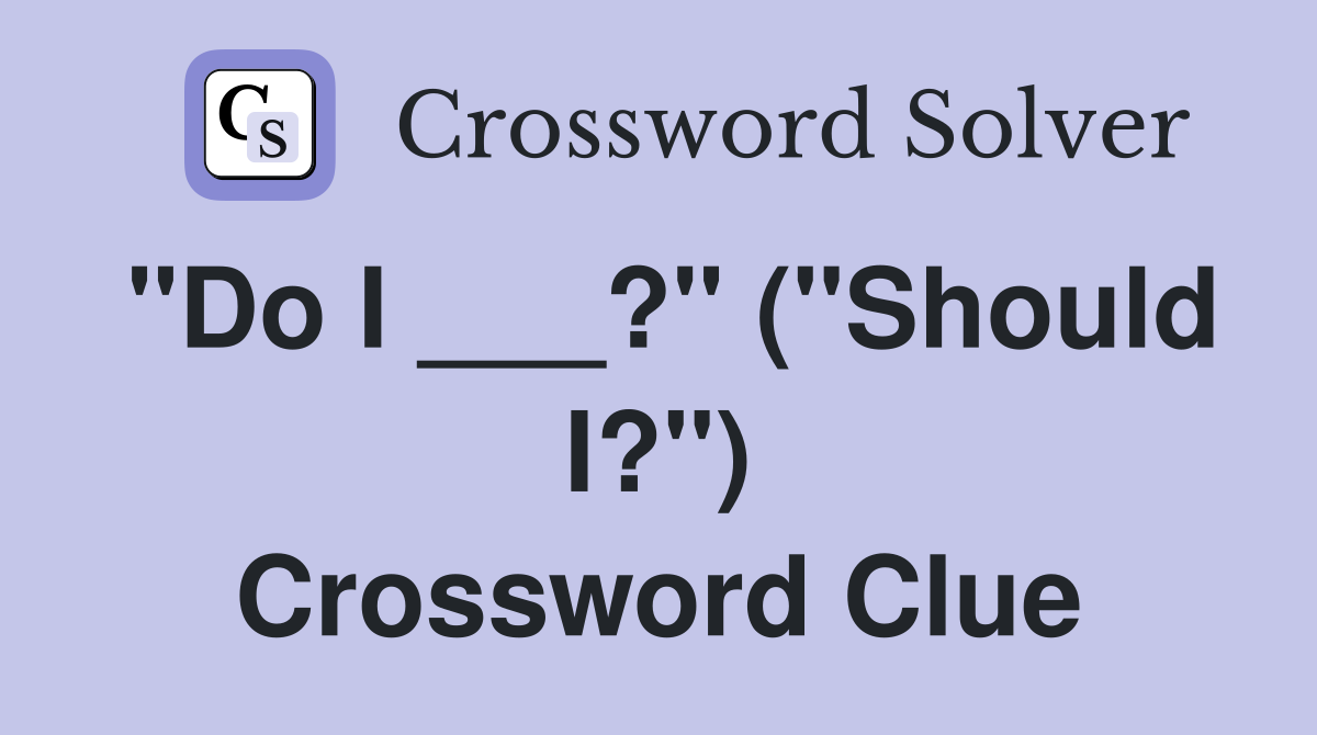 quot Do I ? quot ( quot Should I? quot ) Crossword Clue Answers Crossword Solver