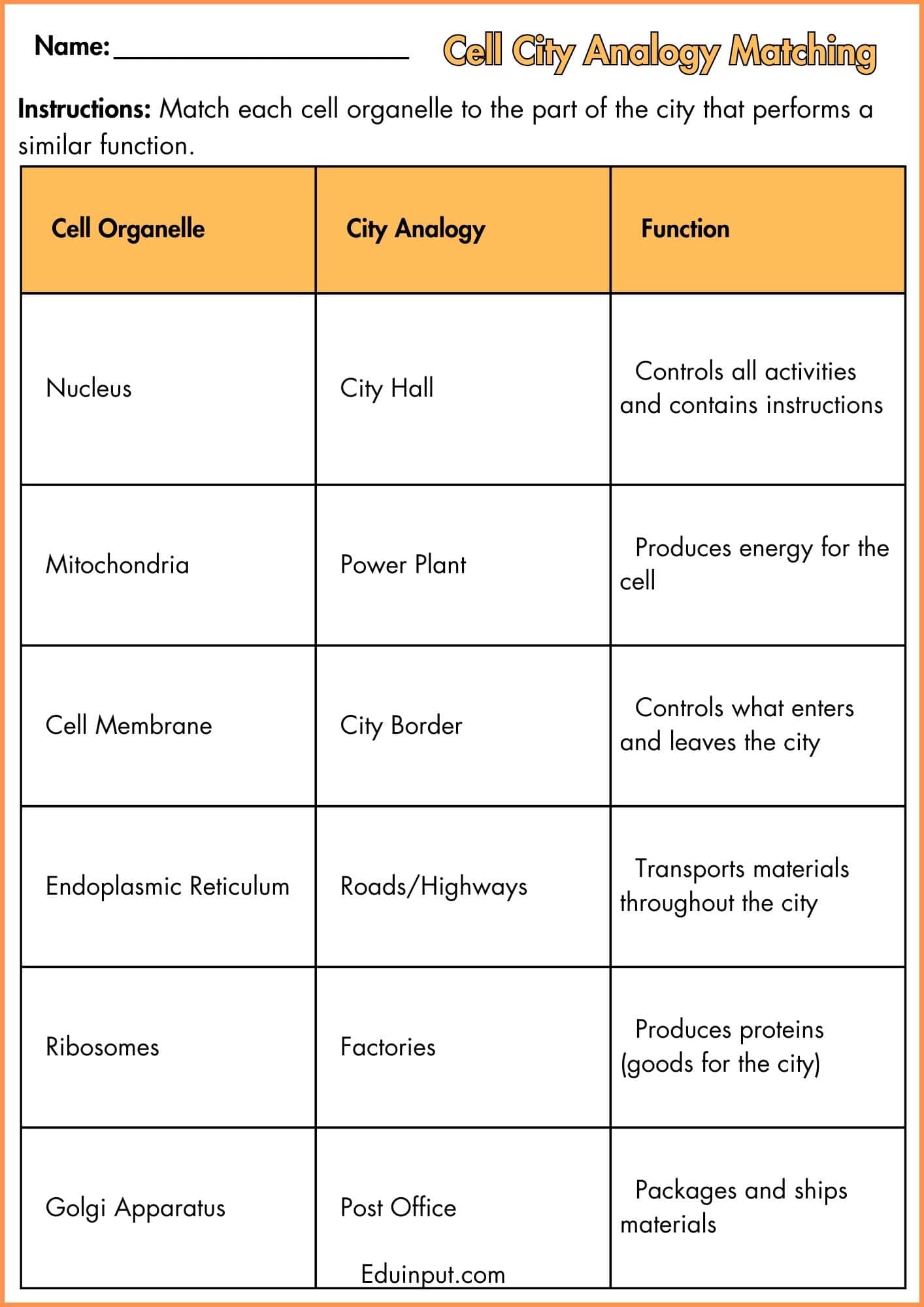Cell City Analogy Worksheet Answers Educational Worksheet