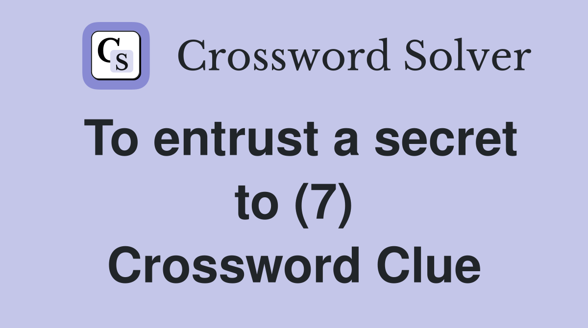 To entrust a secret to (7) Crossword Clue Answers Crossword Solver