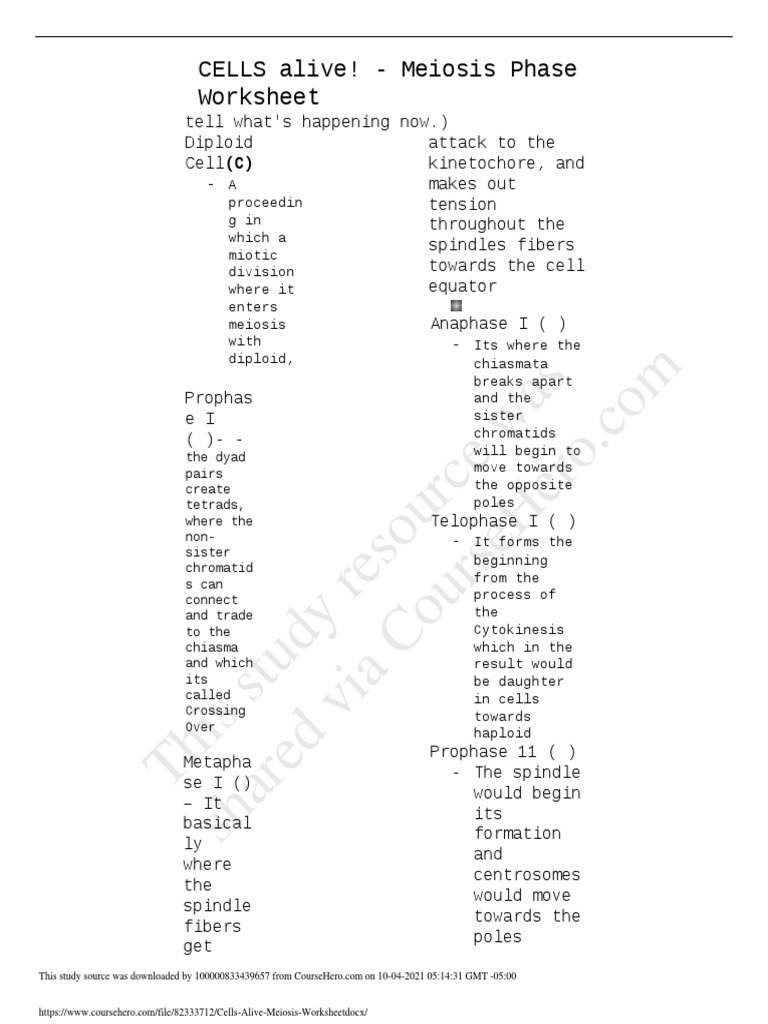 This Study Resource Was: CELLS Alive Meiosis Phase Worksheet PDF