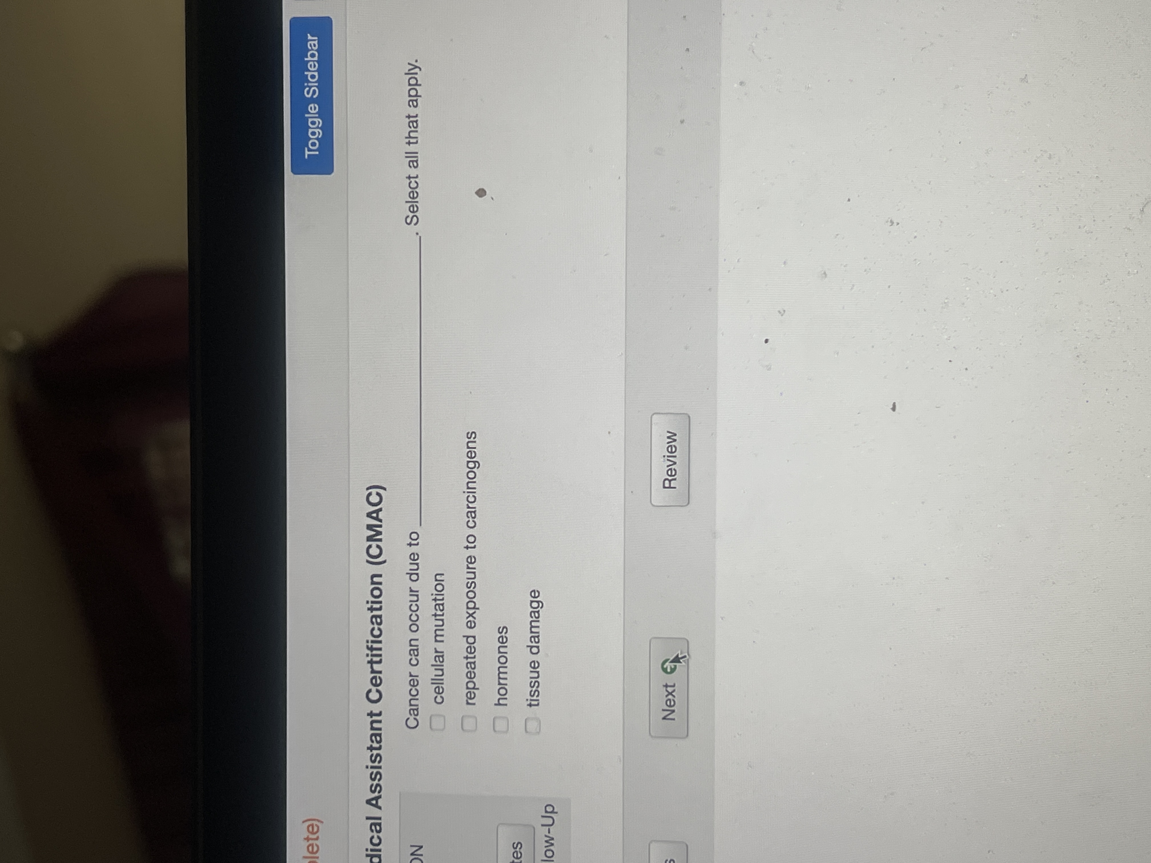 Solved dical Assistant Certification (CMAC)Cancer can occur Chegg com