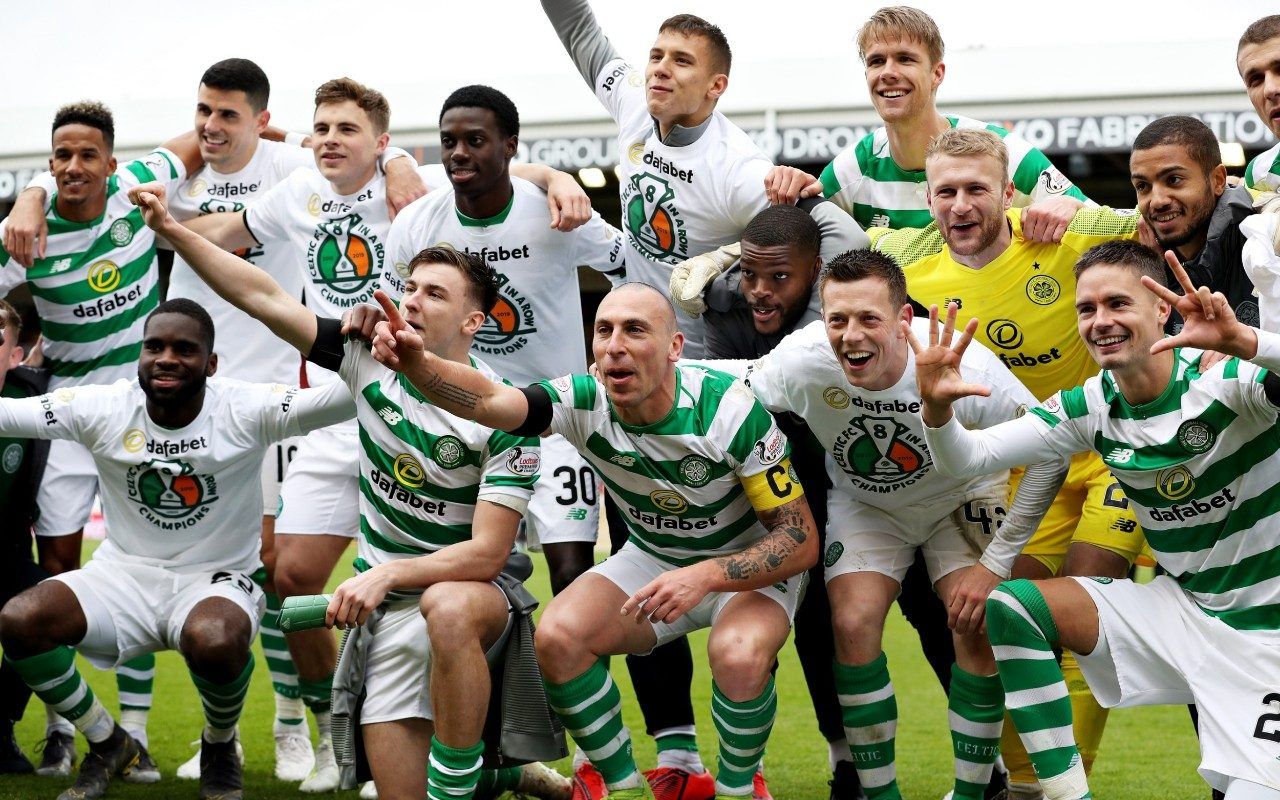 Celtic celebrate title win by beating Hearts but both teams #39 sights