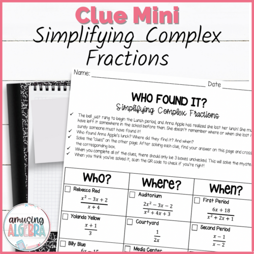 Simplifying Complex Fractions Clue Mini Mystery Activity Made By