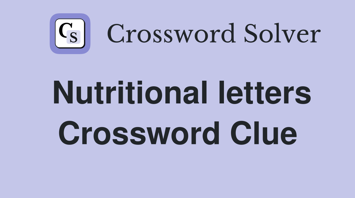 Nutritional letters Crossword Clue Answers Crossword Solver