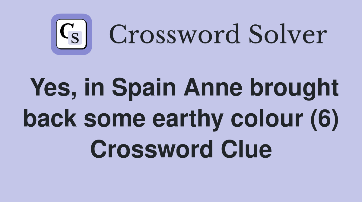 Yes in Spain Anne brought back some earthy colour (6) Crossword Clue