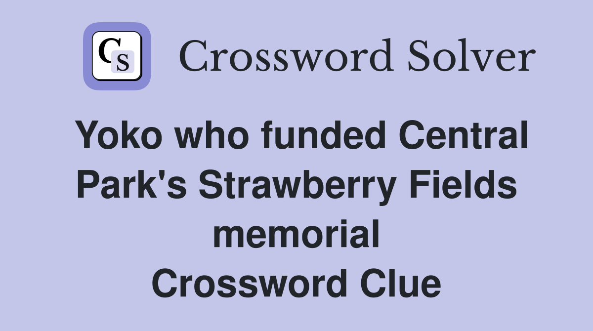Yoko who funded Central Park #39 s Strawberry Fields memorial Crossword
