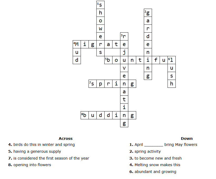 Crossword: Spring time is here ANSWERS WestCentralOnline: West
