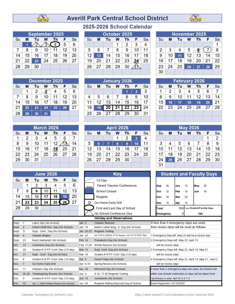 Kings Park Central School District Calendar 25 26 pdf revised EduCounty