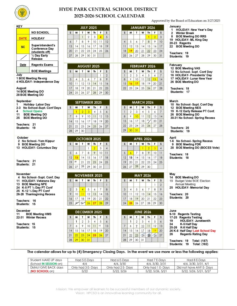 Hyde Park Central School District Calendar 25 26 revised EduCounty
