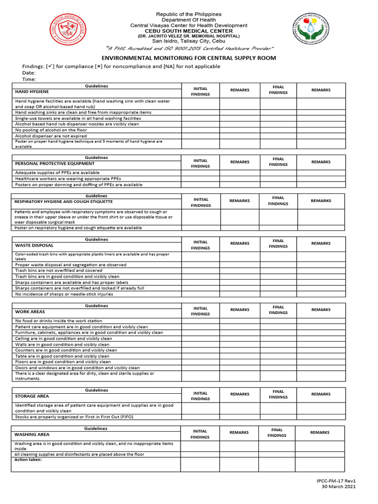 IPCC FM 17 Rev1 Daily Environmental Monitoring For Central Supply Room