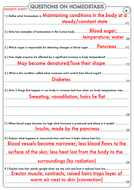 Homeostasis revision worksheet year 9 science