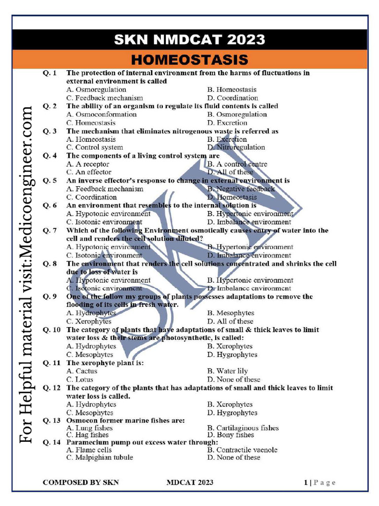 Homeostasis Worksheet 950 Mcqs by SKN 2023 Compressed Watermark PDF
