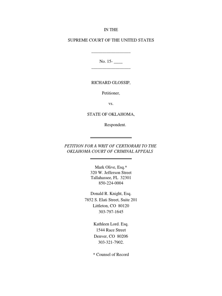 15 6340 Glossip Cert Petition To Supreme Court PDF Psychosis