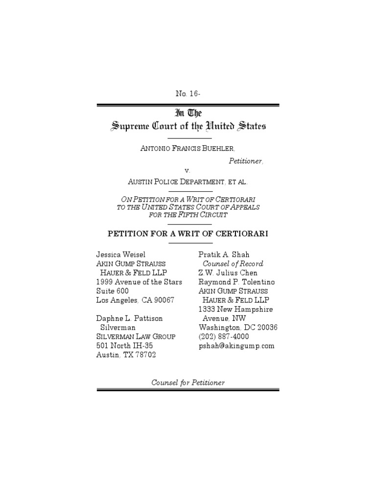 Antonio Buehler Cert Petition Before The Supreme Court of The United