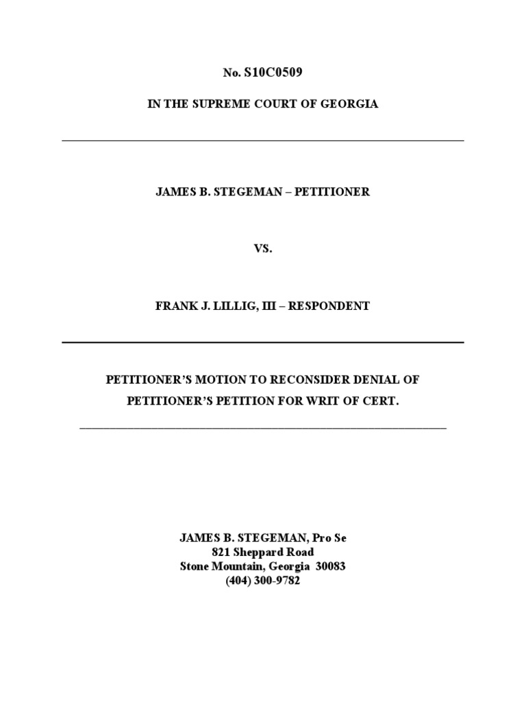 Motion To Reconsider Denial of Petition For Cert GA Supreme PDF