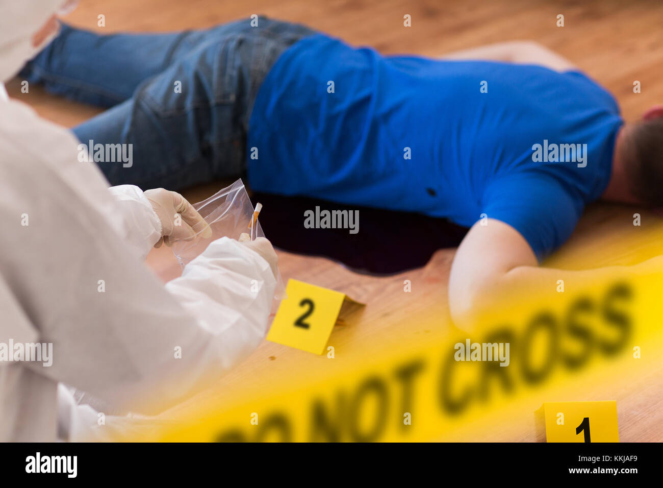 criminalist collecting evidence at crime scene Stock Photo Alamy