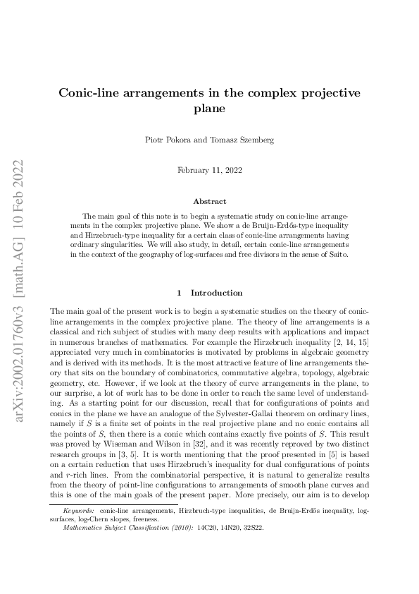 (PDF) Conic Line Arrangements in the Complex Projective Plane Tomasz