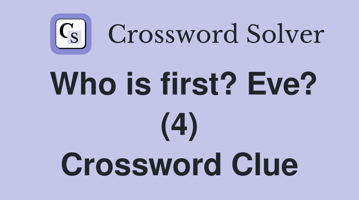Who is first? Eve? (4) Crossword Clue Answers Crossword Solver