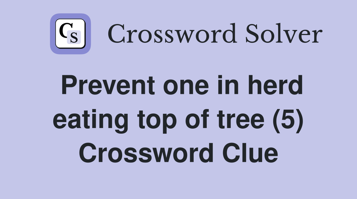 Prevent one in herd eating top of tree (5) Crossword Clue Answers