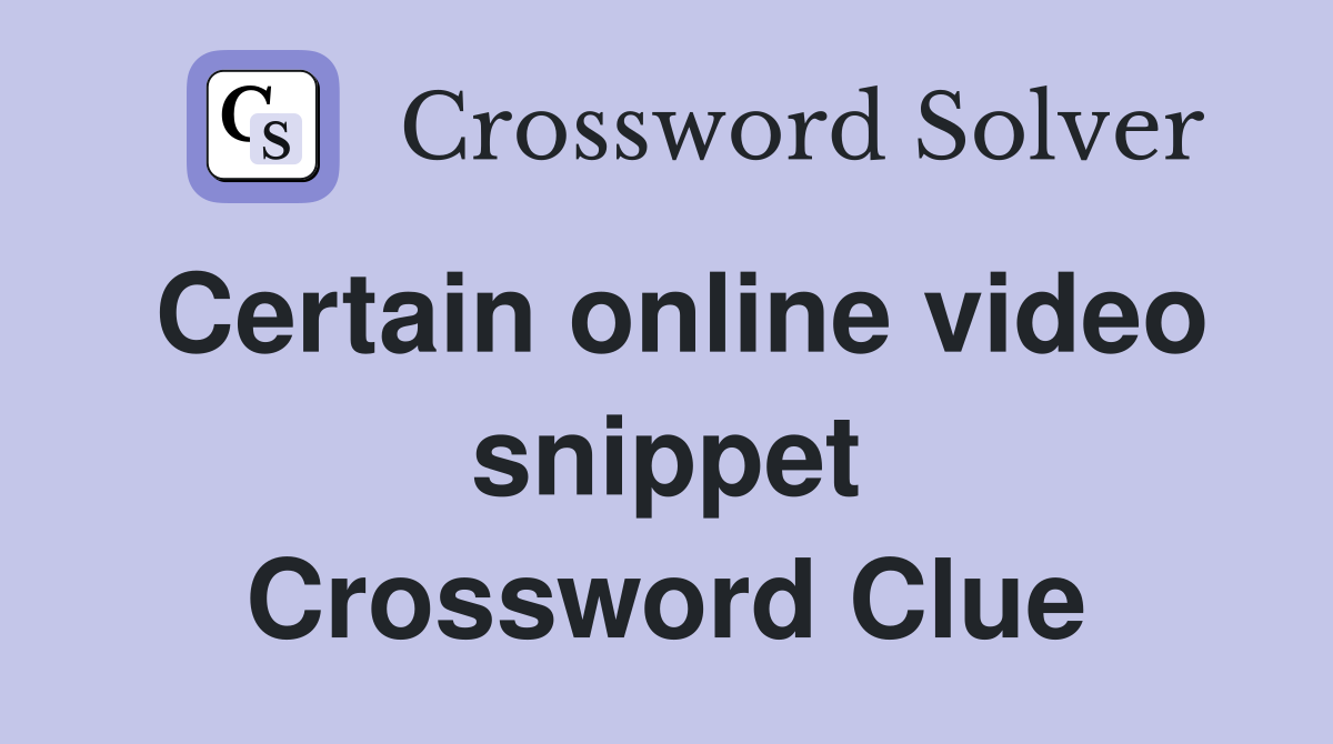 Certain online video snippet Crossword Clue Answers Crossword Solver