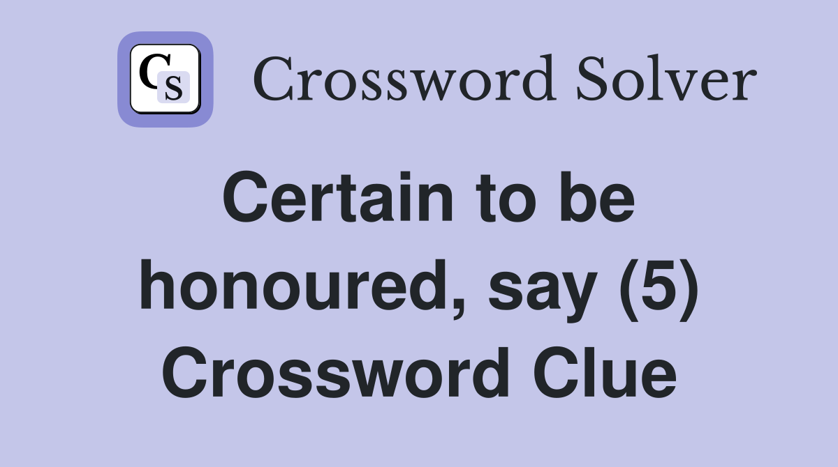 Certain to be honoured say (5) Crossword Clue Answers Crossword Solver