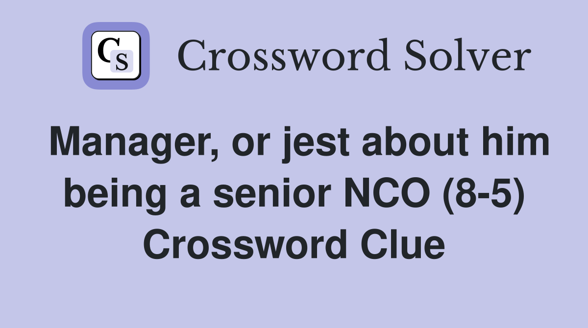 Manager or jest about him being a senior NCO (8 5) Crossword Clue