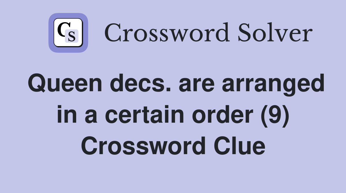 Queen decs are arranged in a certain order (9) Crossword Clue