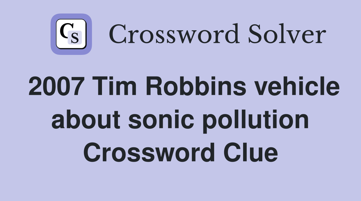 2007 Tim Robbins vehicle about sonic pollution Crossword Clue Answers