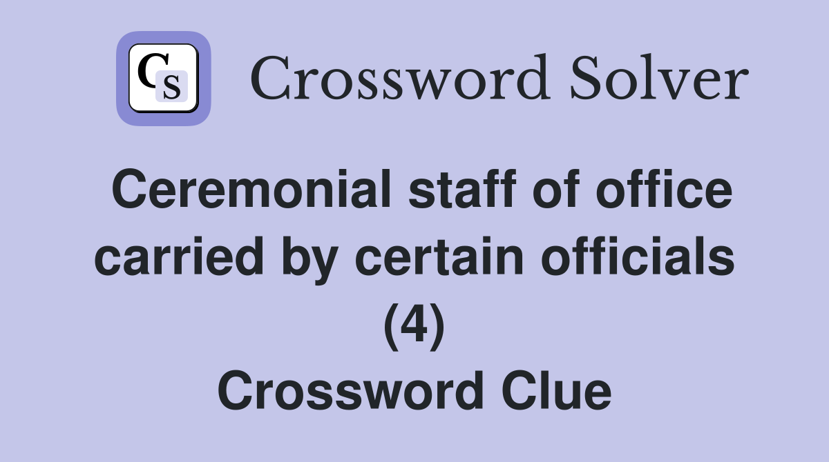 Ceremonial staff of office carried by certain officials (4) Crossword