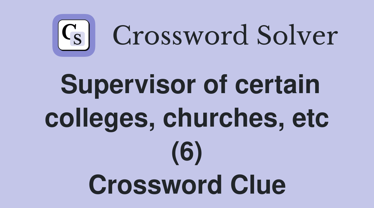 Supervisor of certain colleges churches etc (6) Crossword Clue