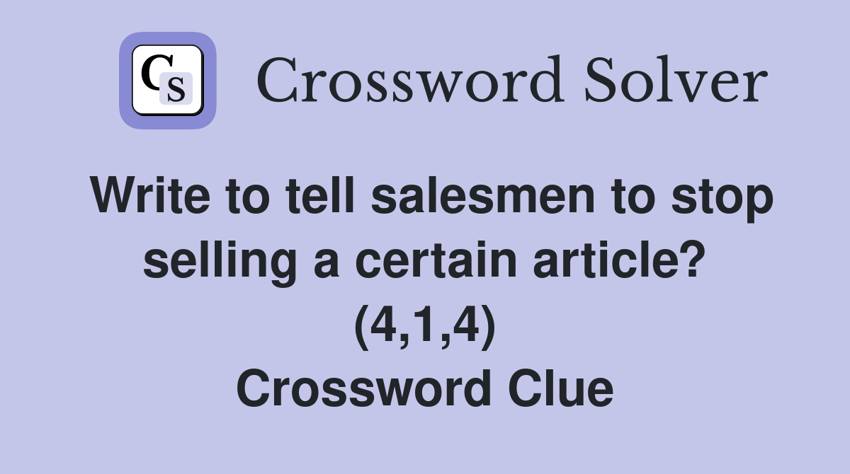 Write to tell salesmen to stop selling a certain article? (4 1 4