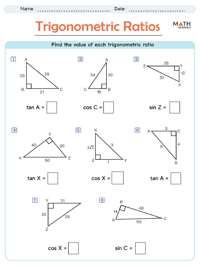 Trigonometric Ratios Worksheets Math Monks Worksheets Library