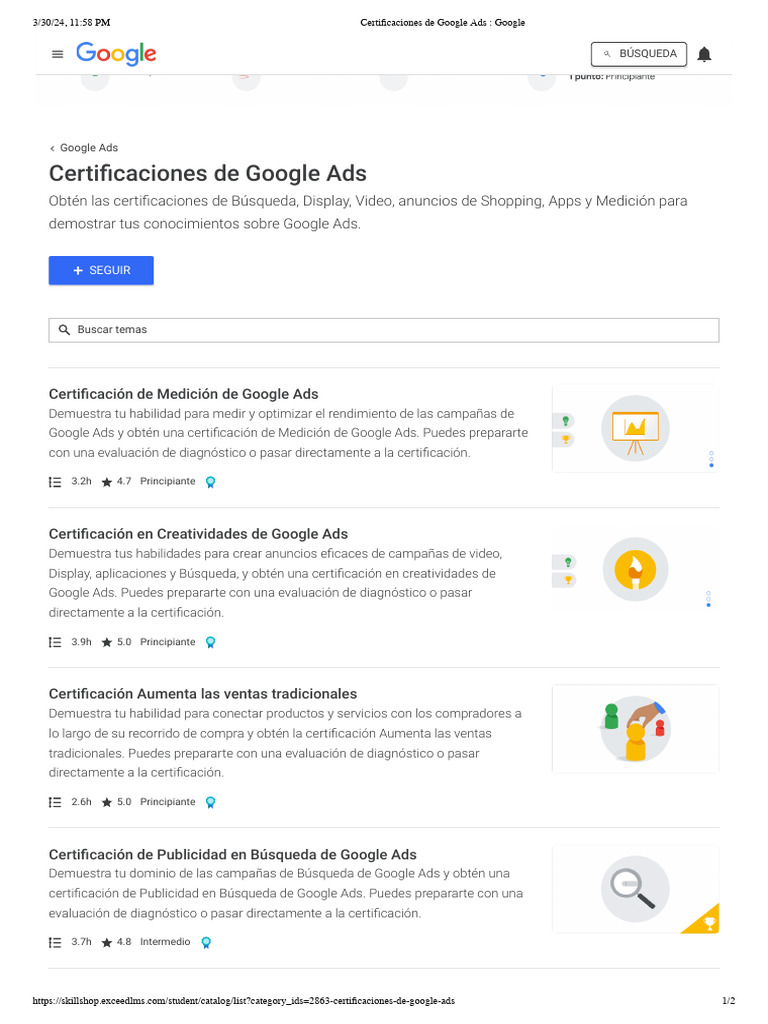 4 Certificaciones de Google Search Ads Skillshop 2023 Espanol PDF