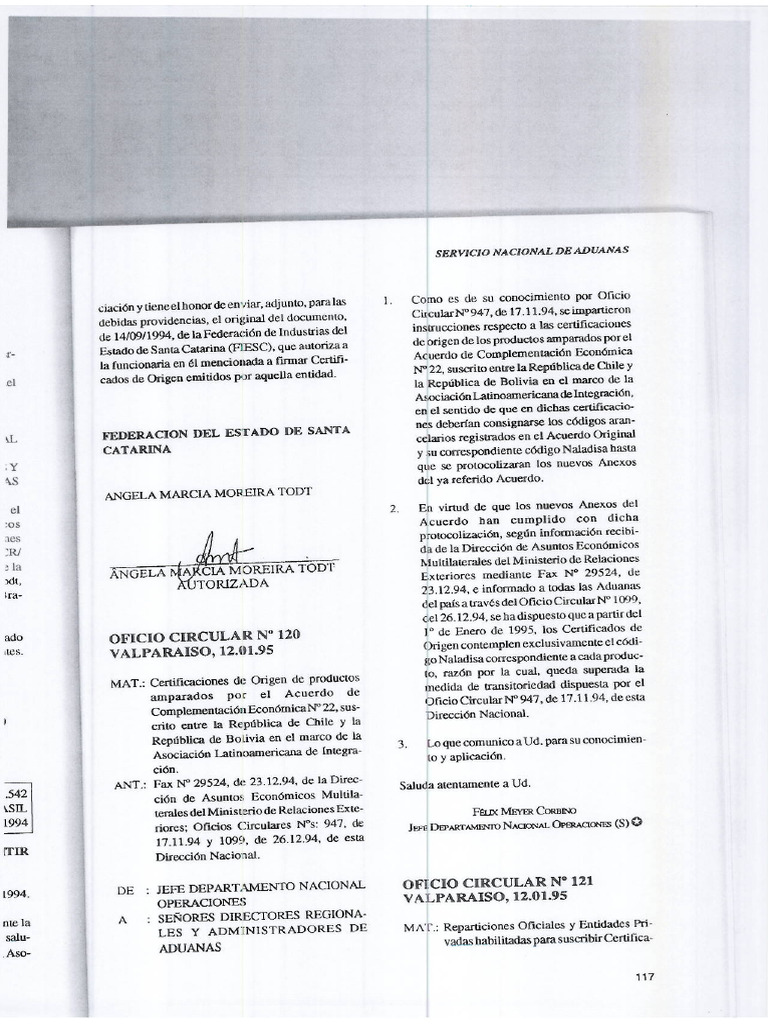 Oficio Circular N 120 12 01 1995 Certificaciones de Origen de Productos