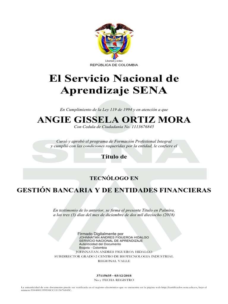 Certificado Tecnologo Sena PDF