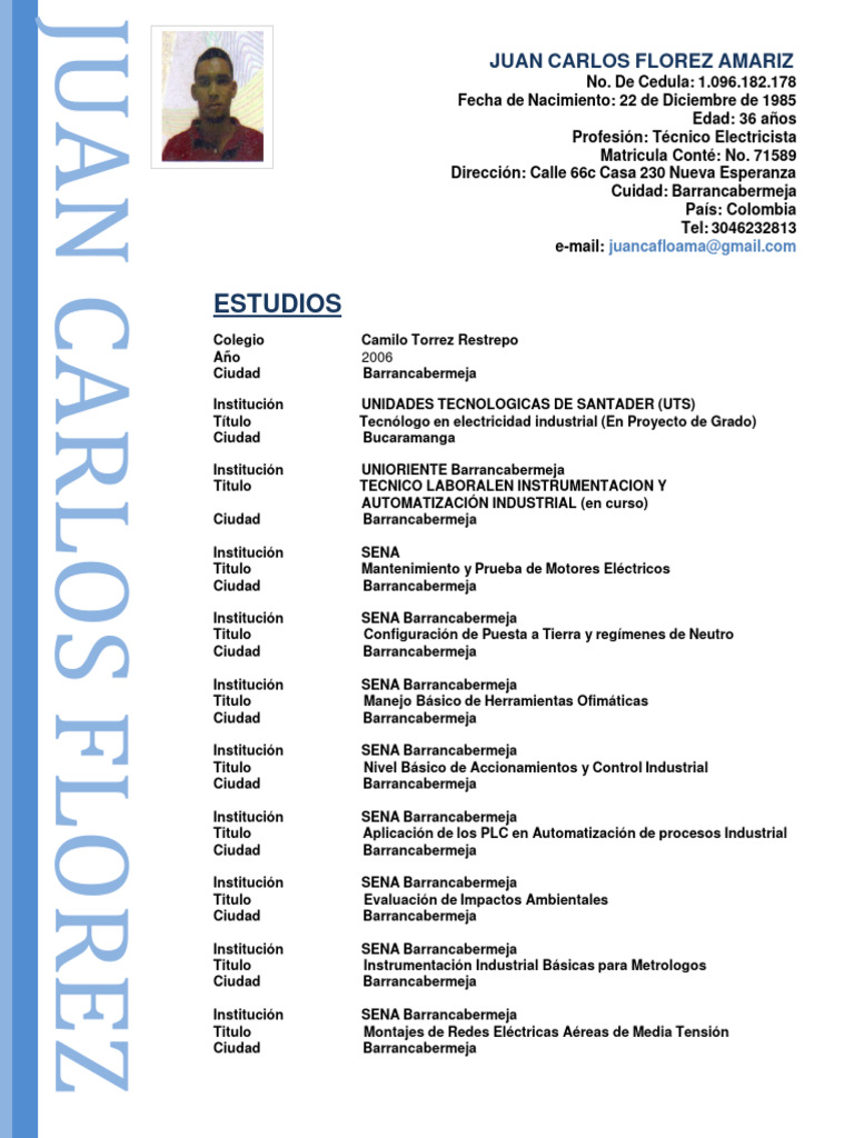 Hoja de Vida Juan Florez PDF Ingenieria Eléctrica Electricista