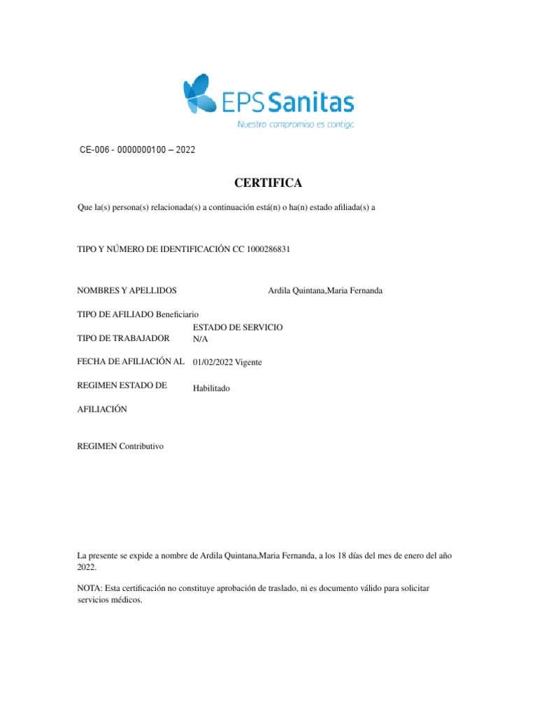 Certificado De Eps Sanita Discount emergencydentistry com