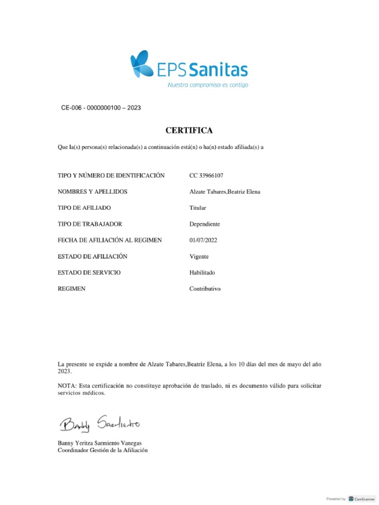 Here are some of the images for Certificaciones Eps Sanitas that we found in our website database.