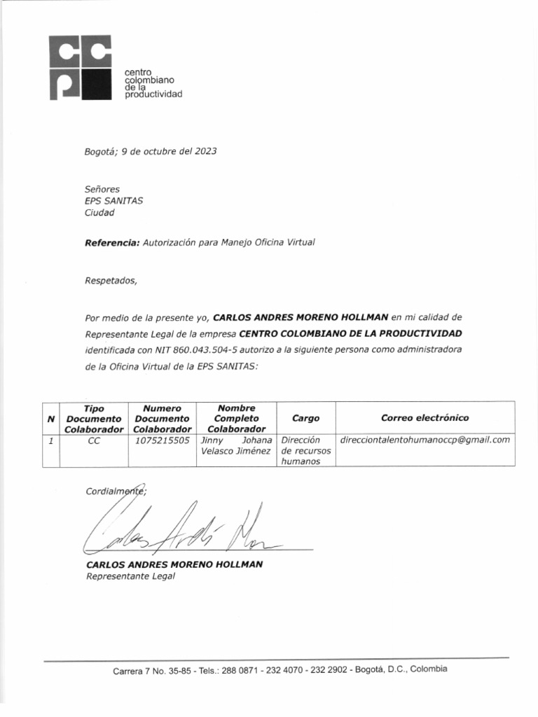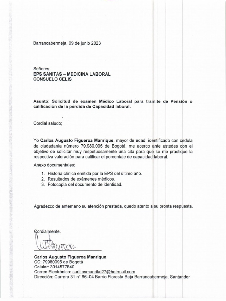Carta Eps Sanitas PDF